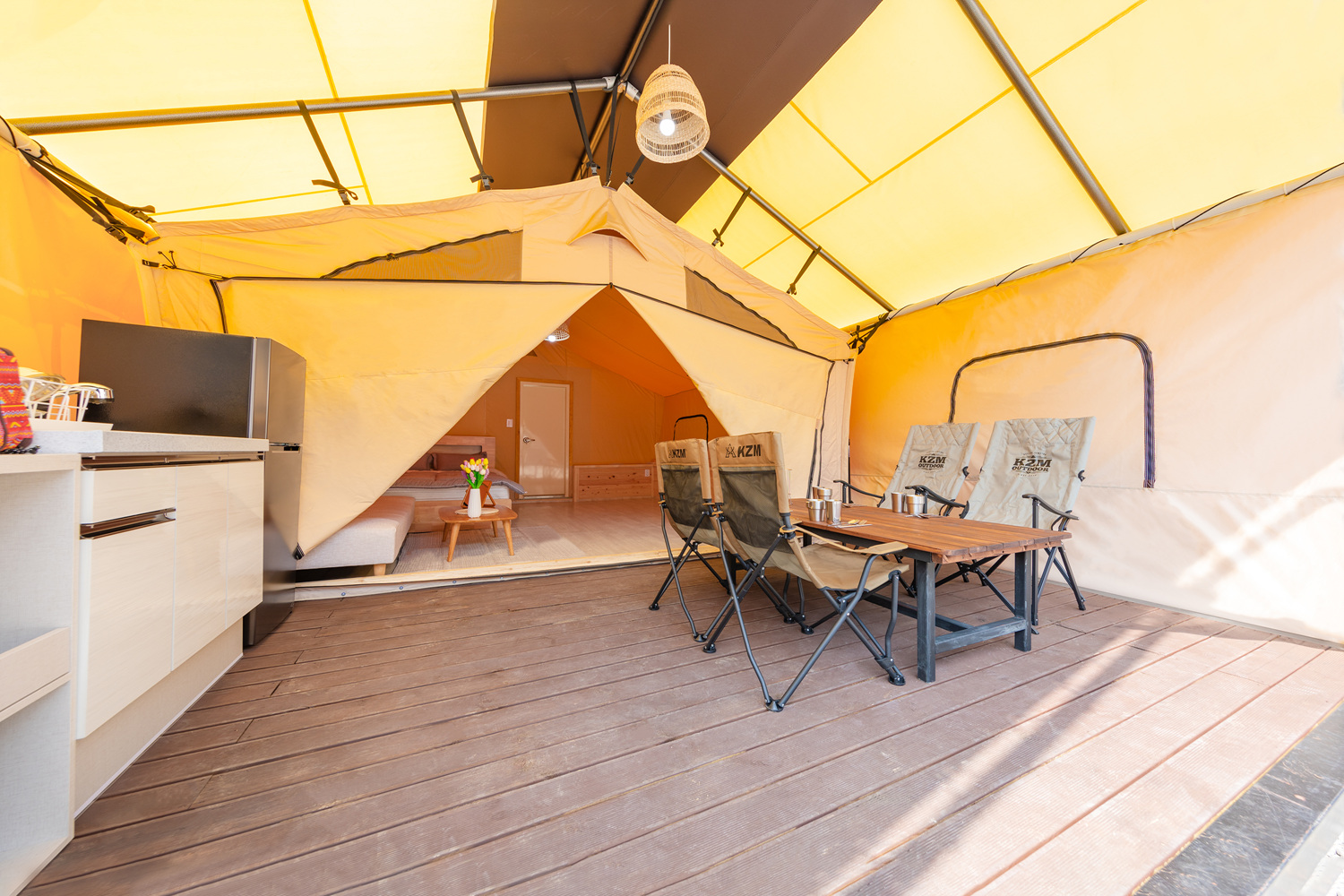 글램핑 입구를 열면 보이는 모습이 꼭 동화속 주인공이 된 것 같은 느낌을 받게하는 것 같아요.