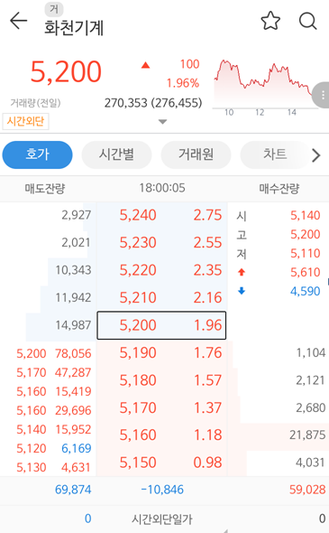4). 시간 외 단일가 장에서 5200선까지 물량을 크게 크게 미리 전부 먹어놨다. - 시외가 2