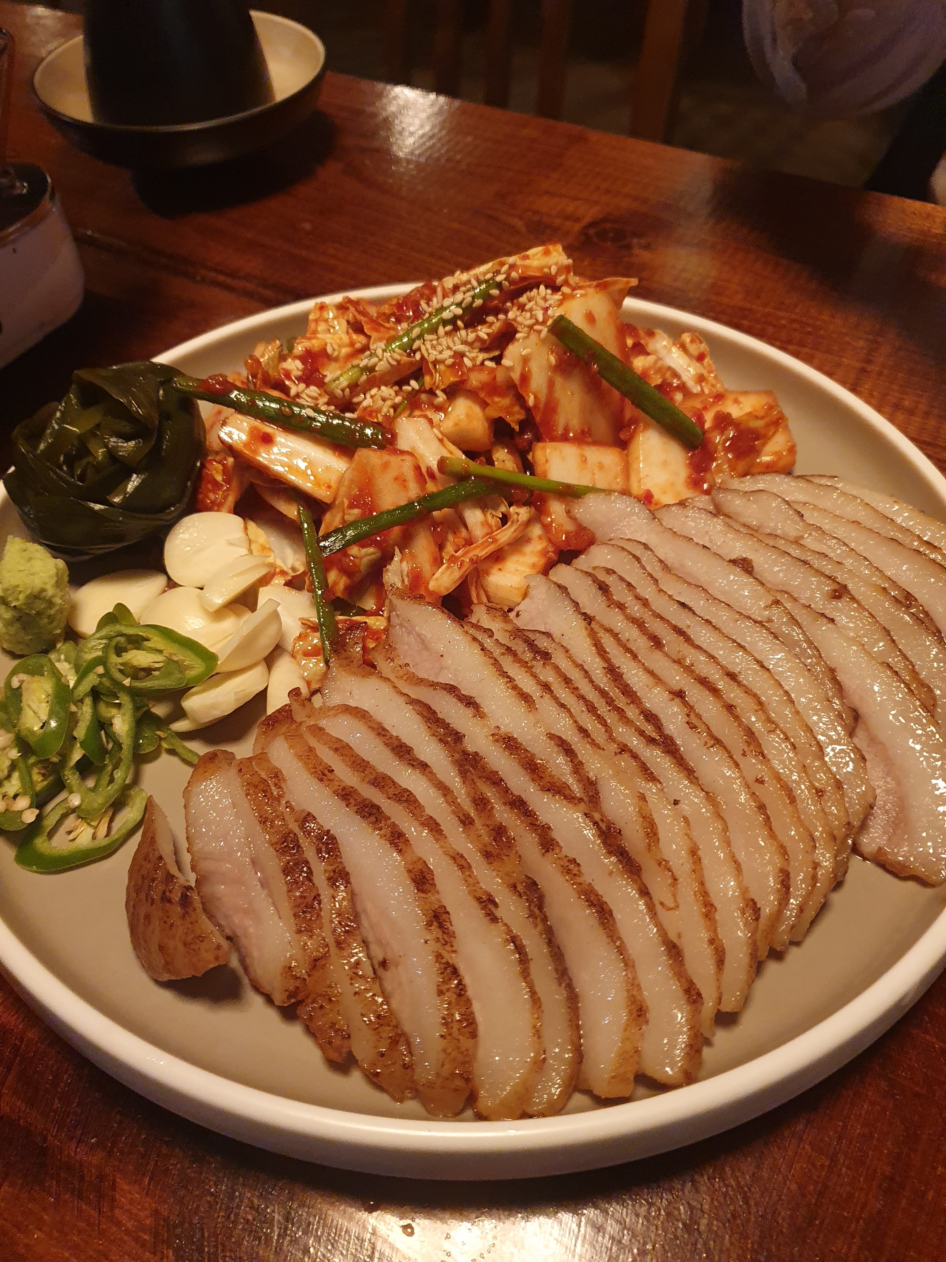 가장 신기했던 메뉴는 항정수육보쌈이에요.