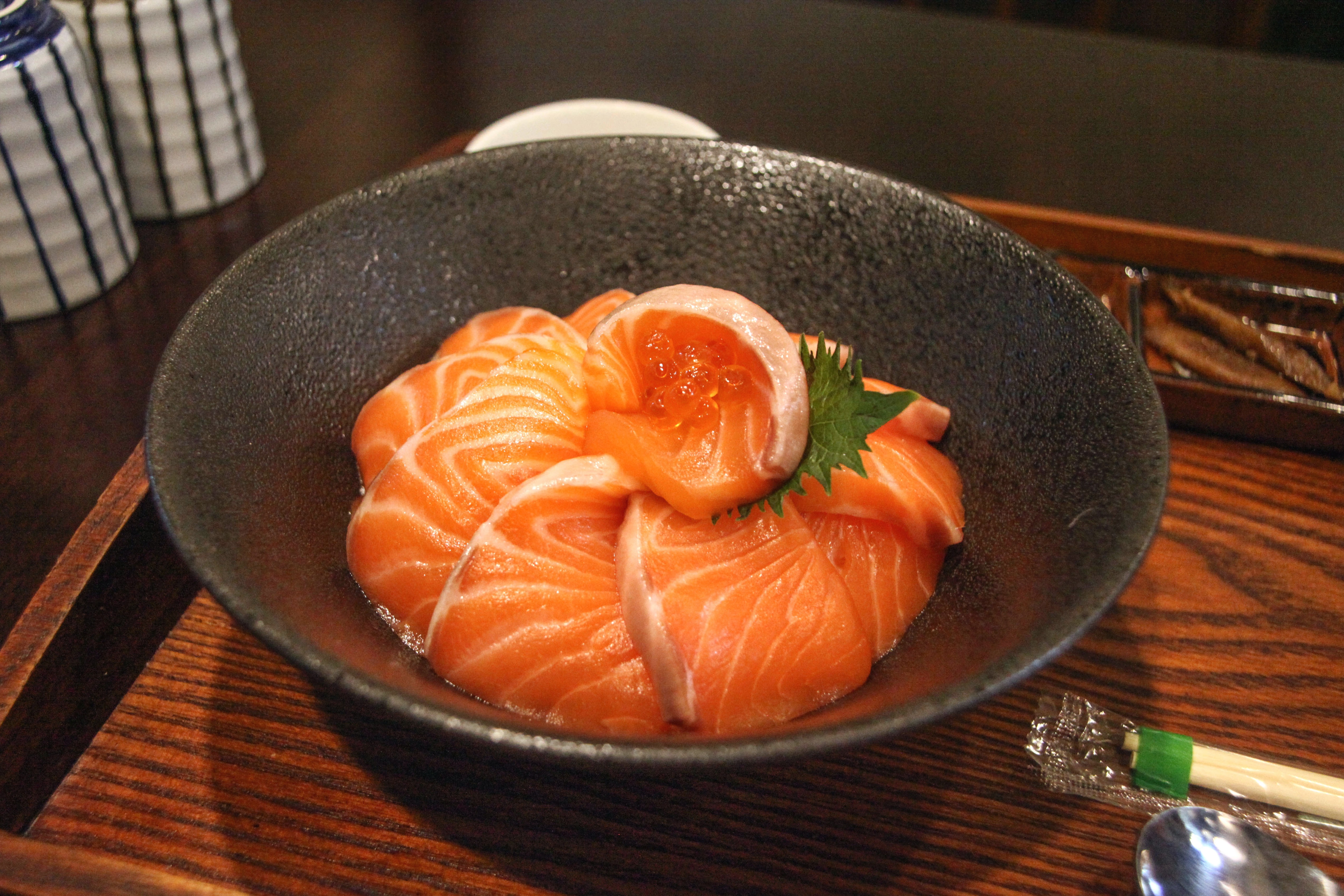 신선한 생 연어가 듬뿍 올라가 있는 사랑스러운 덮밥