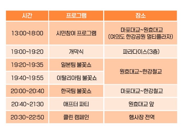 ✔ 행사 시간에는 5호선 여의나루역 무정차 통과, 한강공원 주차장 통제