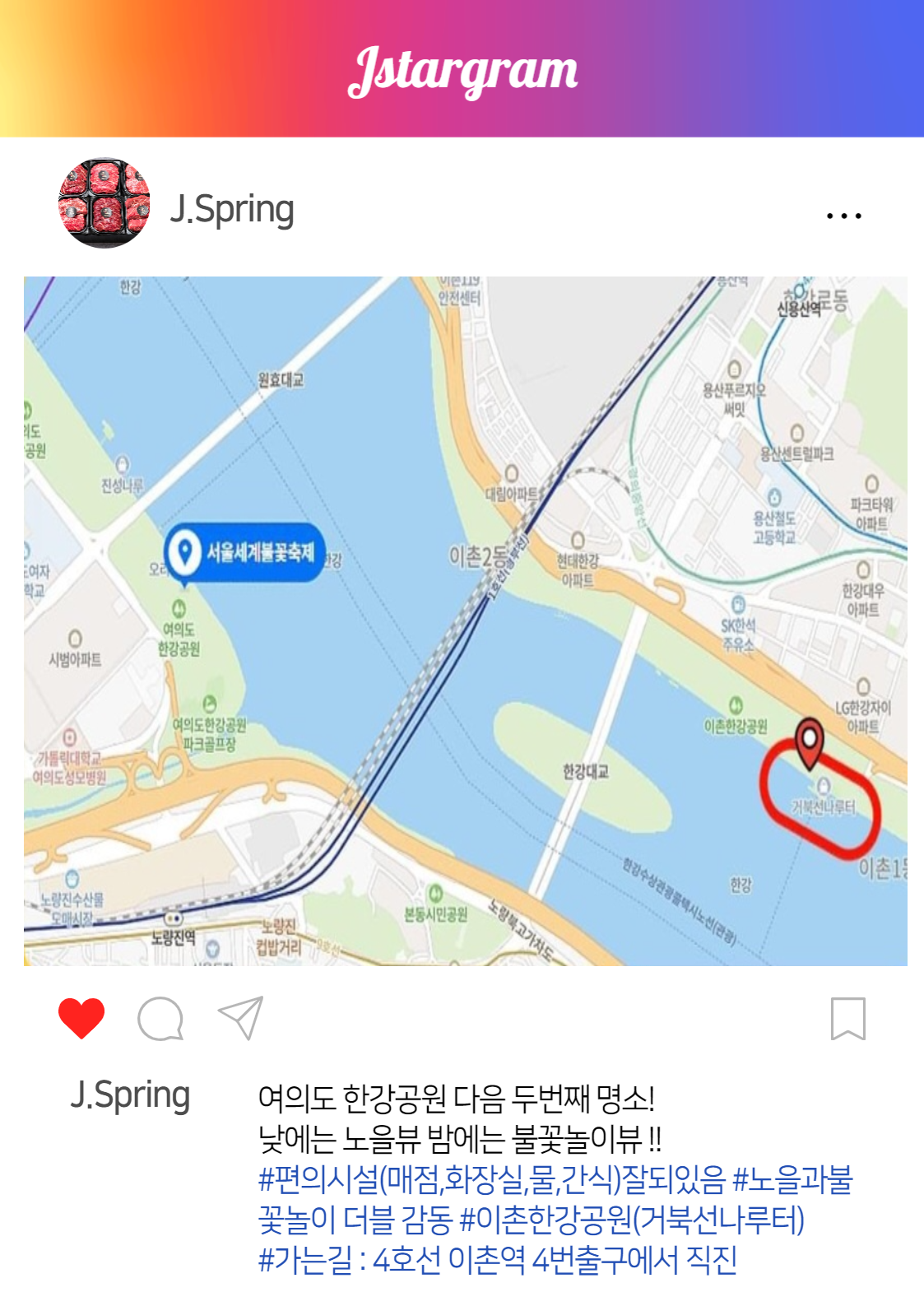 그리고 일단 불꽃놀이를 재밌게 본 뒤 바로 맛집을 갈 수 있겠죠 ?? ㅎㅎ