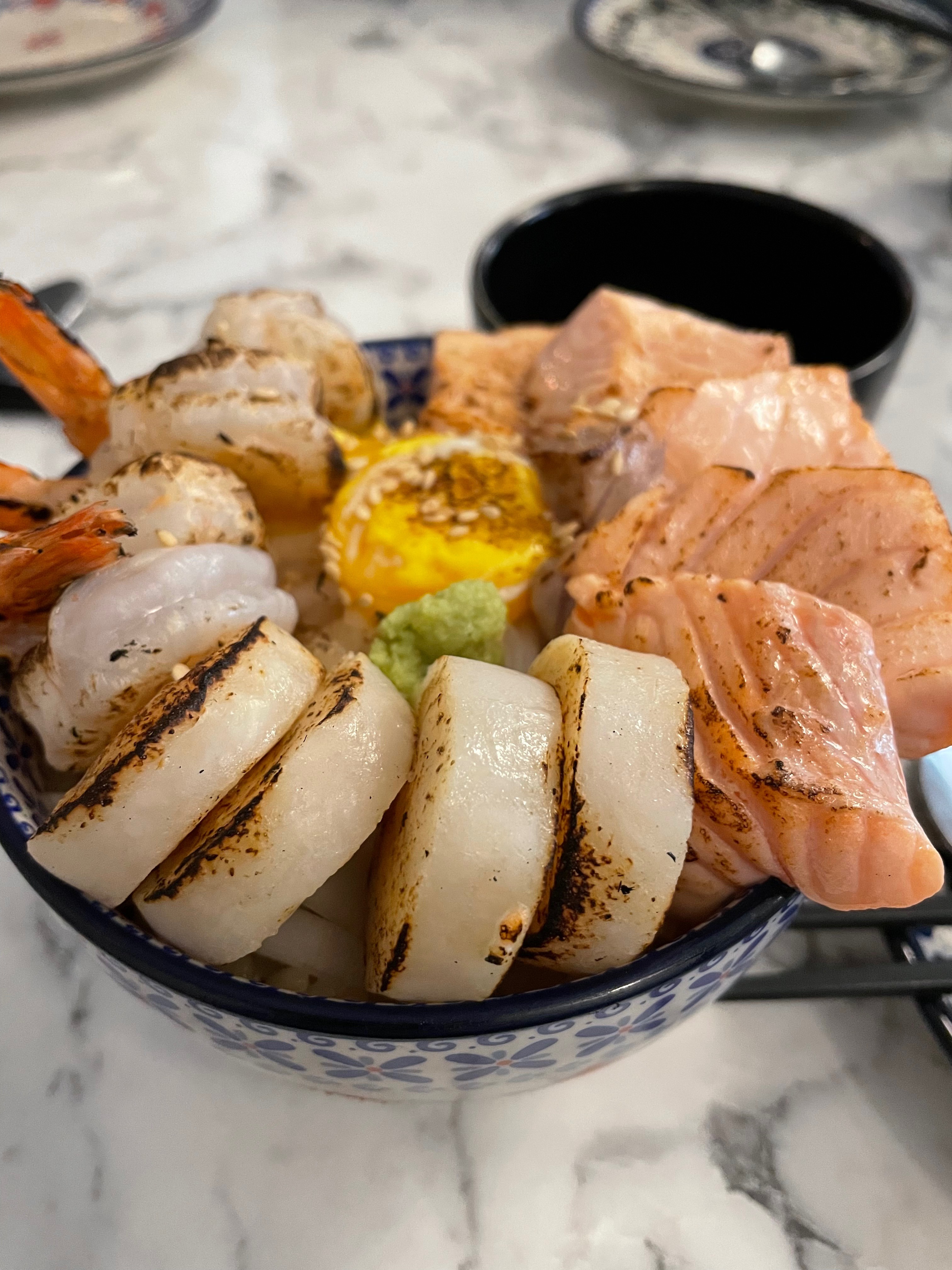 맛있는 연어와 새우 그리고 쪼올깃한 관자까지 버무려진 이 아부리동 하나면