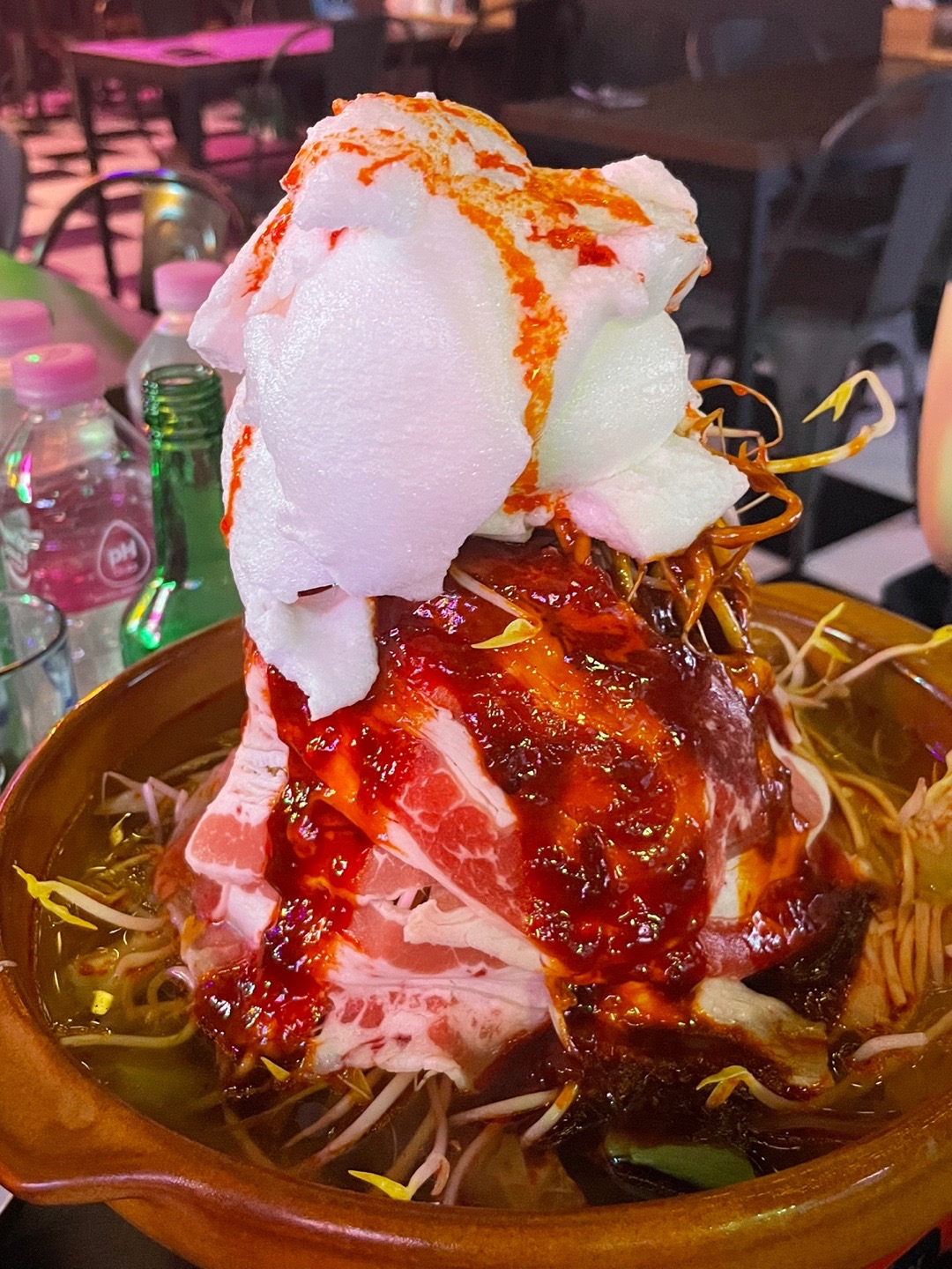 홍대 홍콩포차의 대표 시그니처 메뉴 홍포마라구름전골입니다.