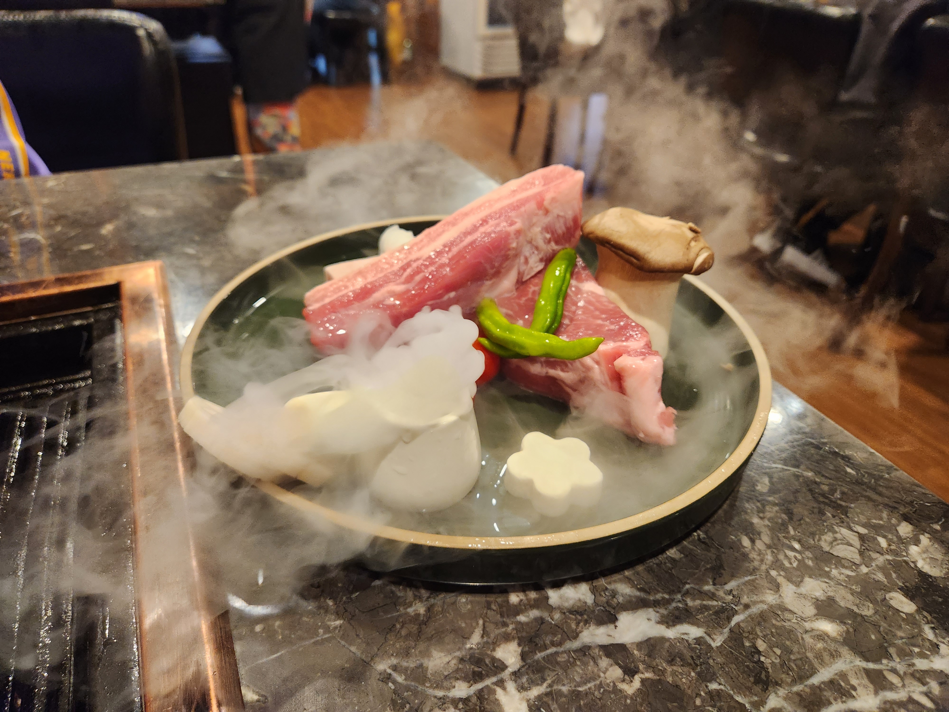 안개가 드리우니 안그래도 신선한 삼겹살 고기가