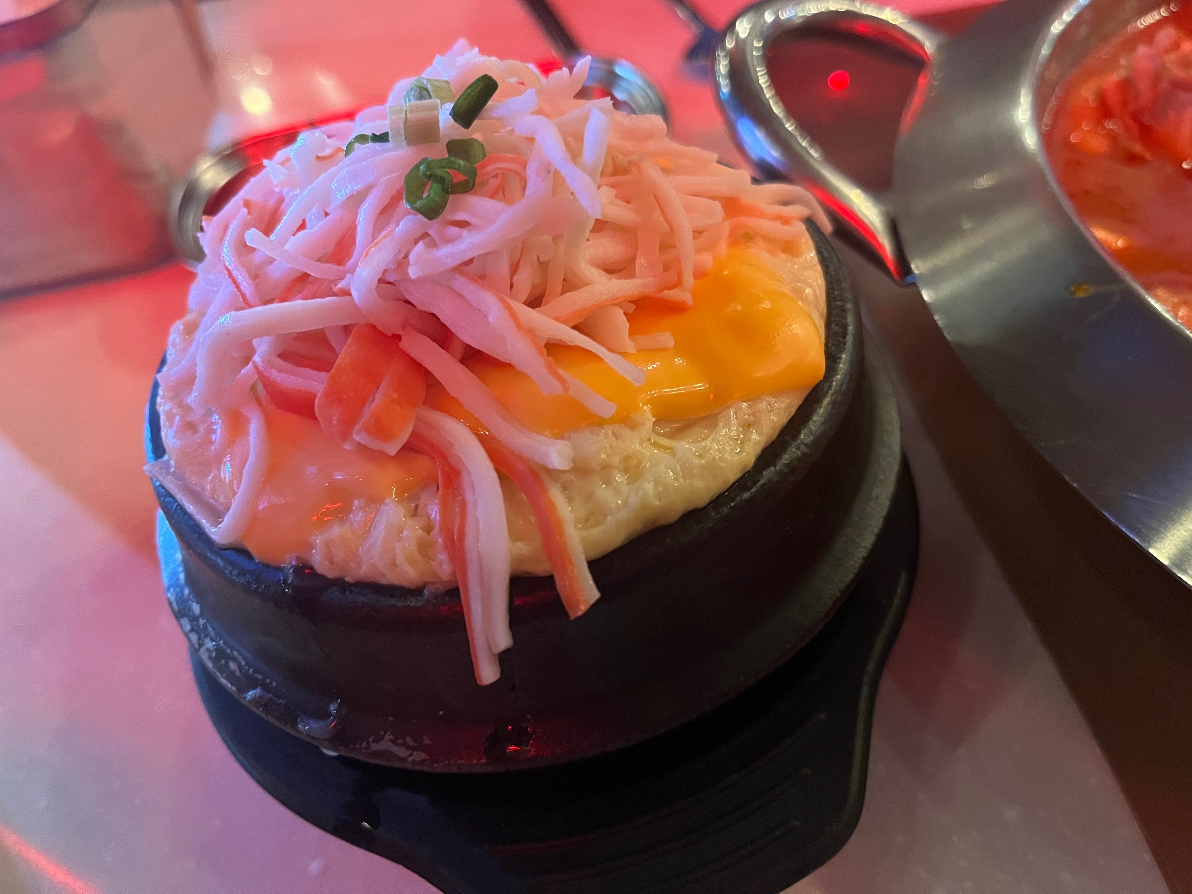 위에 올라간 게살과 치즈가 계란찜과 셋이 손을 잡고