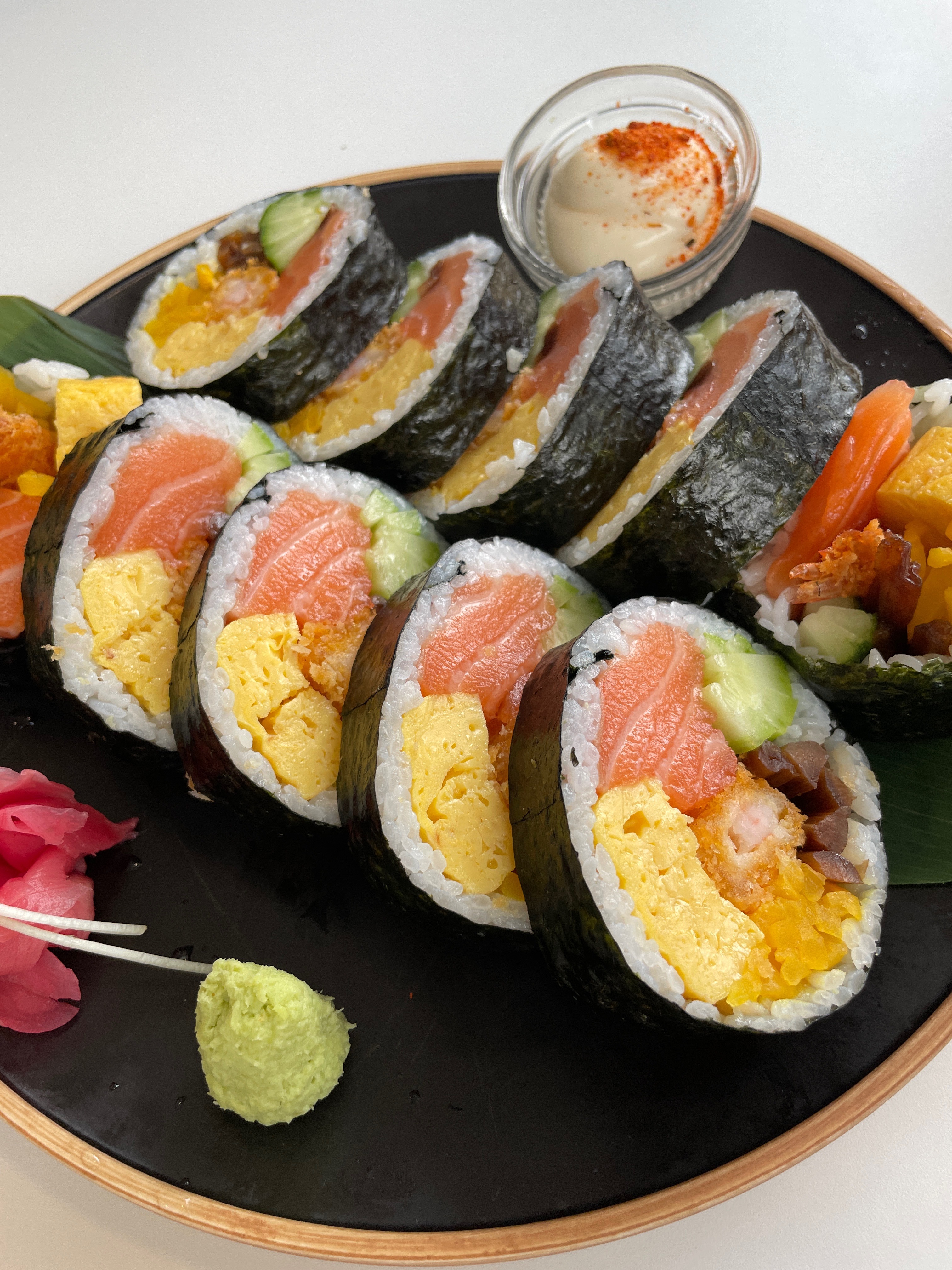 저 큼지막한 연어와 바삭한 새우튀김이 들어간 후토마키도
