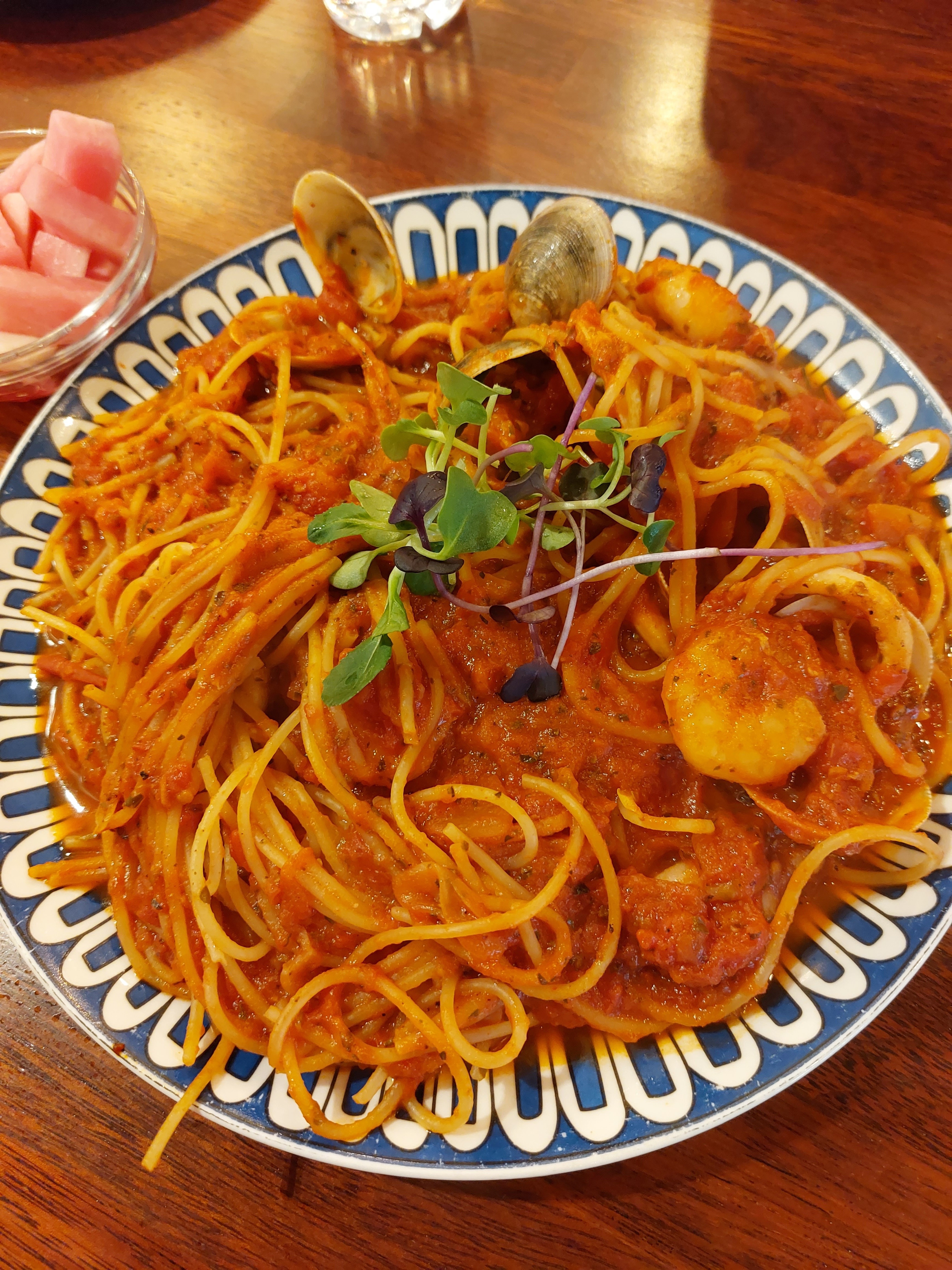 싱싱한 해산물이 어우러진 토마토스파게티가 진짜 아 ! 이게 스파게티지! 하는 느낌이