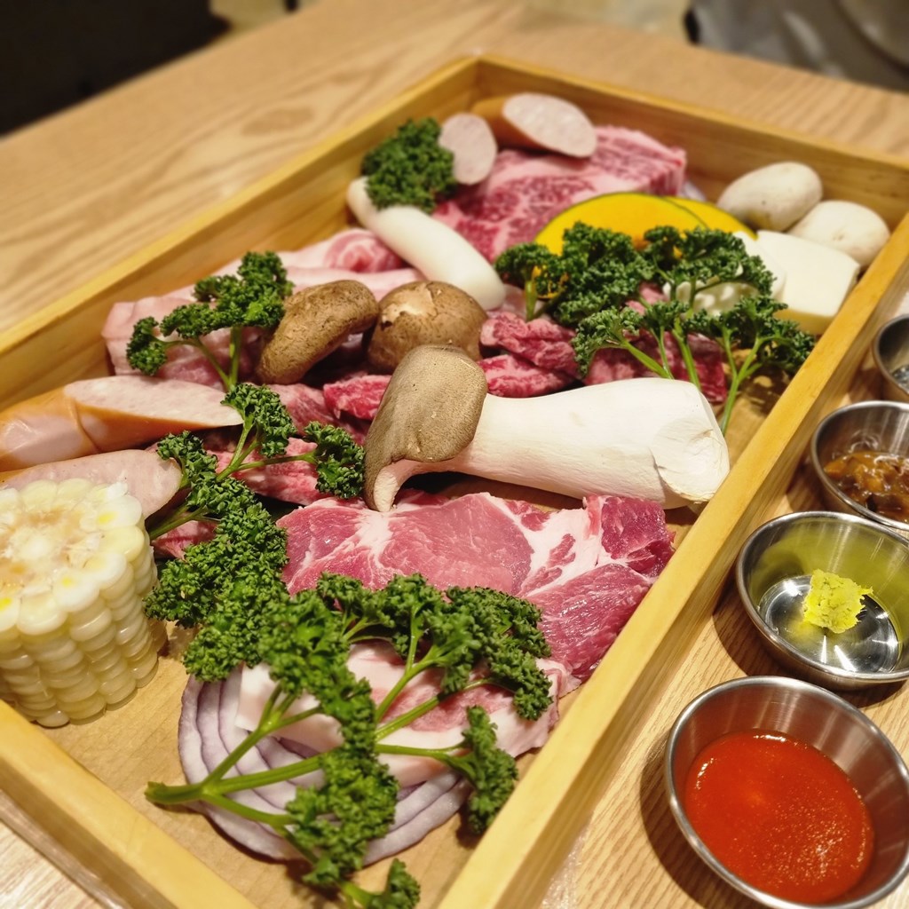 - 제공 메뉴 : 한우 갈비 꽃살(39,000원), 한우 살치살(38,000원), 한우 채끝(34,000원), 한우 등심(34,000원), 육즙 오겹살(17,600원), 탱글 꽃 목살(17,600원), 쫀득 가브리살(18,500원), 아삭 항정살(20,500원)