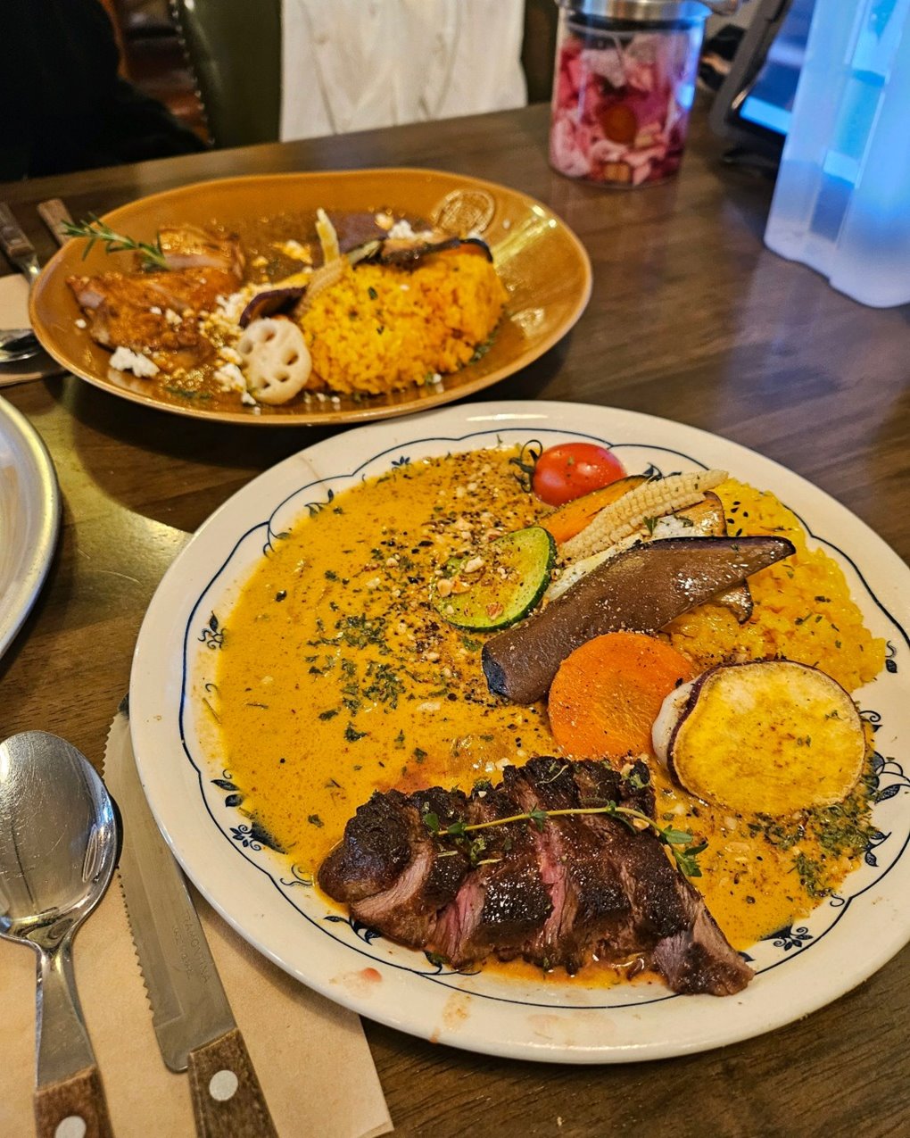 익숙한 맛 그 카레 절대 아님! 향신료가 조금 들어가고 감칠맛이 더 나는!! 야채도 구워져 나와서 👍 비프카레로 주문했는데 소고기도 너무 웰던으로 잘 구워지고 야채 소고기 카레와의 조합 👍