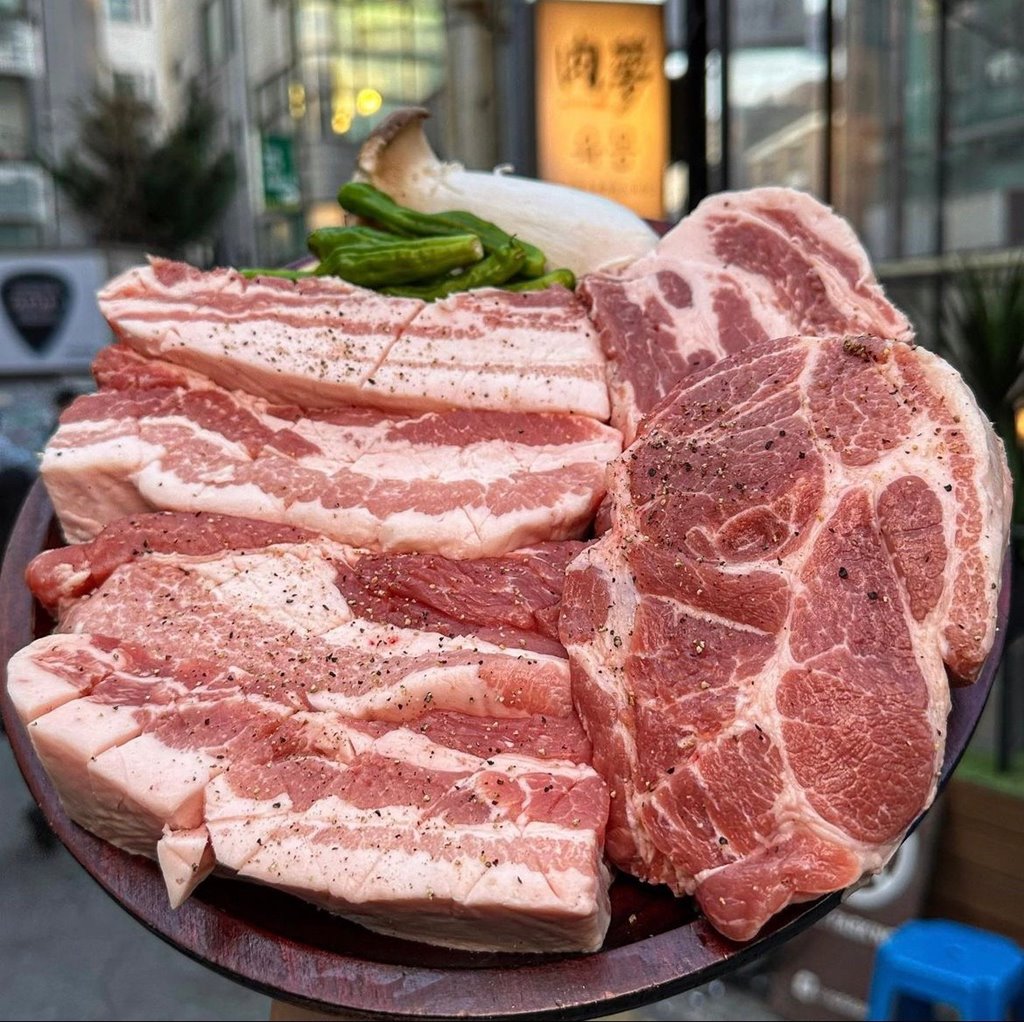 육몽은 소고기랑 돼지고기를 같이 판매해서 회식하기도 좋아요~ 특히 돼지고기는 구워주신다고 하니 편하게 먹을 수 있어요 저는 소갈비살 주문했는데 잡내없이 먹기 딱이였고 특히 냉면이랑 같이먹어서 더 맛있었어요~~