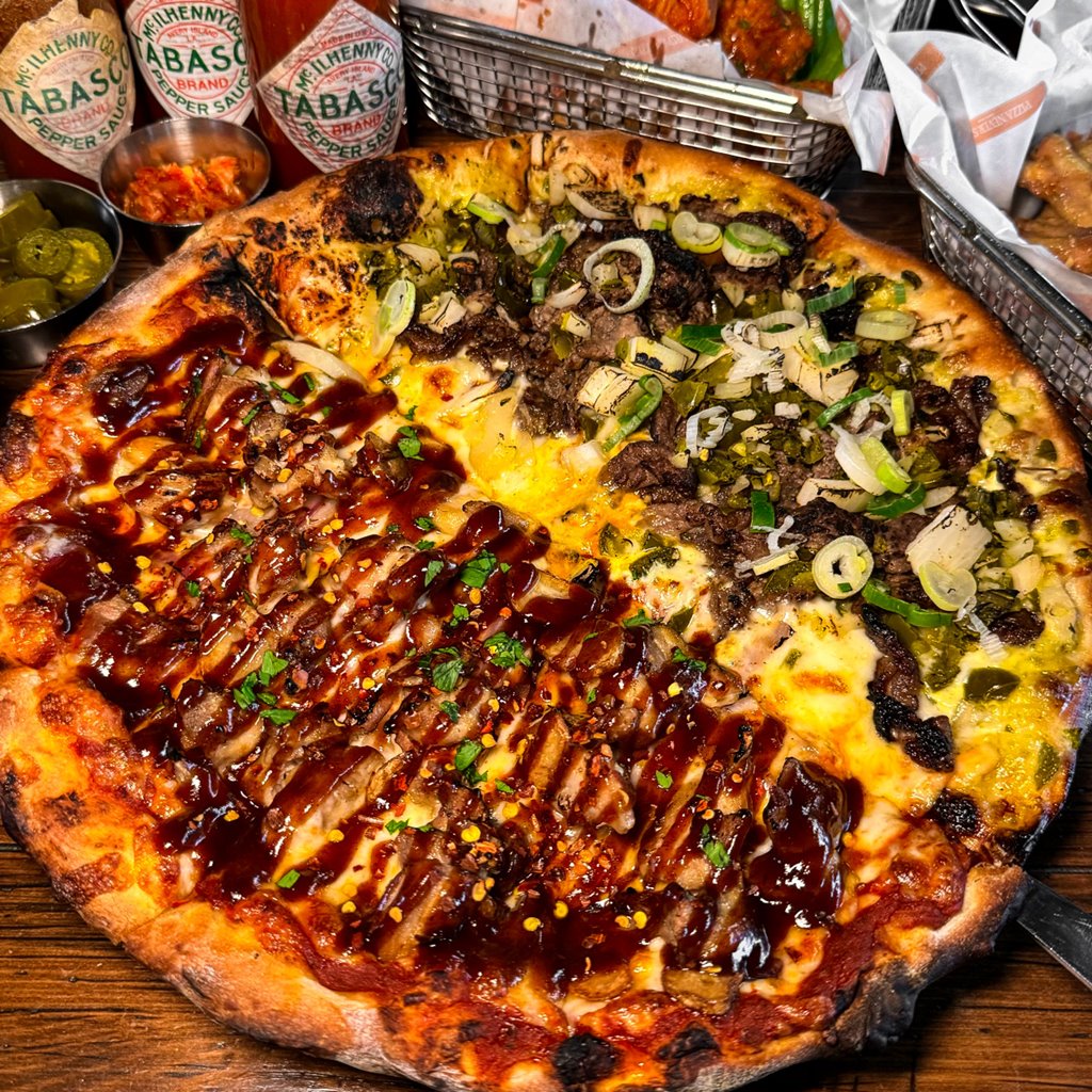 - 제공 메뉴 : 하프 앤 하프(변동), 콘 브라운 피자(29,000원), 미나리 고추장 삼겹 피자(31,000원), 더블 페퍼로니 피자(27,000원), 포테이토 피자(28,500원), 치즈 피자(22,500원), 페퍼로니 피자(23,500원), 맥나잇 피자(28,500원) 등..