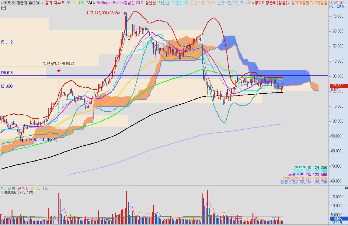카카오 일봉 기준 차트