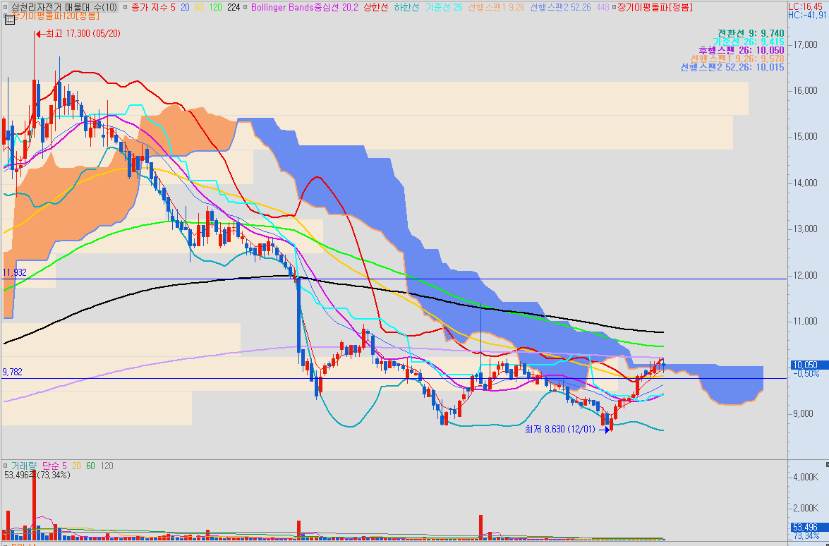 ✔ 종목 설명 : 해당 종목의 경우 하단에서 어느정도 올라와서 횡보중이며 구름대 및 라운드피겨(10,000원)를 돌파한 종목입니다. 손절가 이탈시 100% 전량 손절 예정이며 상승시 이전 기준봉 이상 11,900원 까지는 분할매도 노려볼 수 있는 종목입니다.
