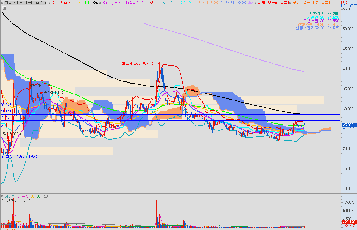 ✔ 종목 설명 : 헬릭스미스는 제약바이오 관련 종목으로 현재 바닥권에서 어느정도 말아 올리는 듯한 움직임을 보여주고 있으므로 단기 스윙을 노려볼만한 종목입니다.