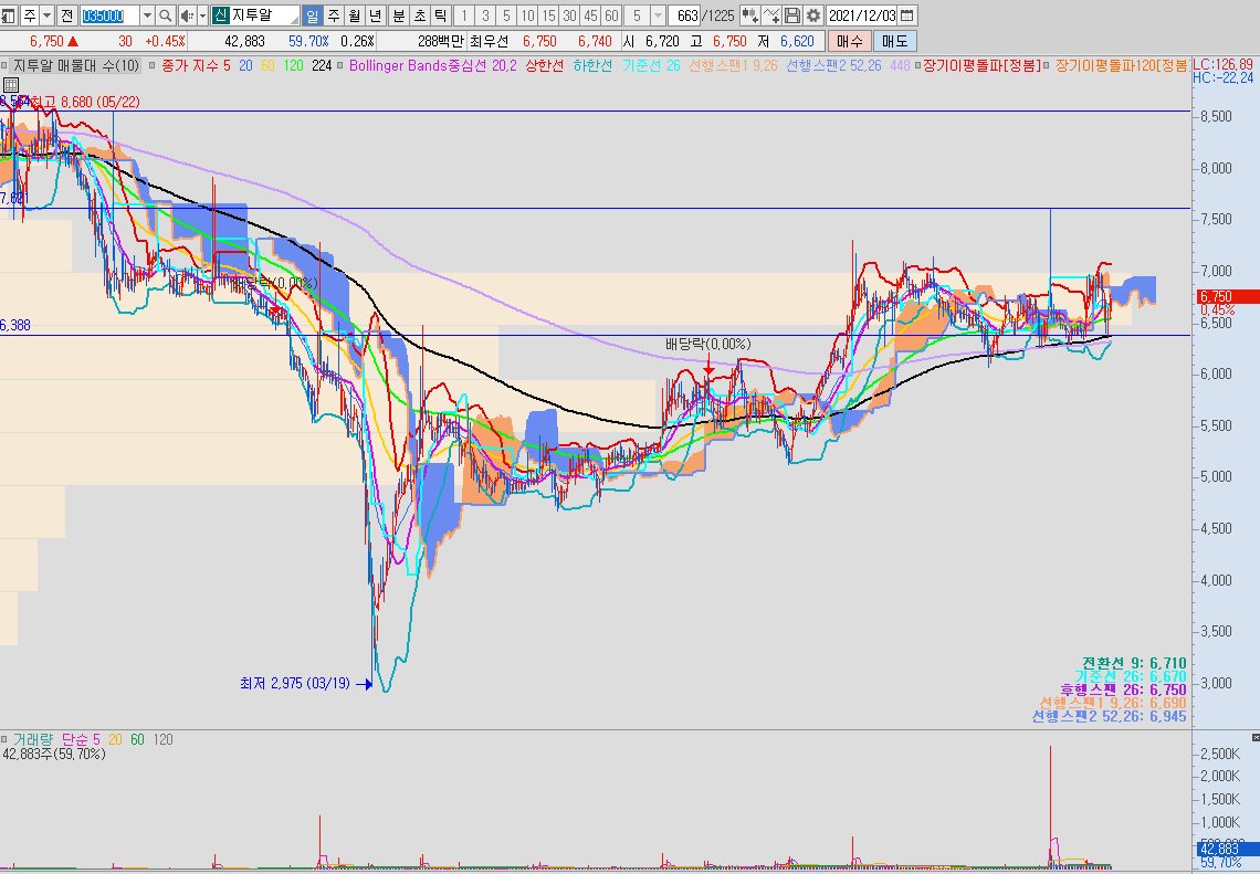 가격 자체가 손절 라인까지 거리가 짧으므로 한번 노려볼만한 종목이다.