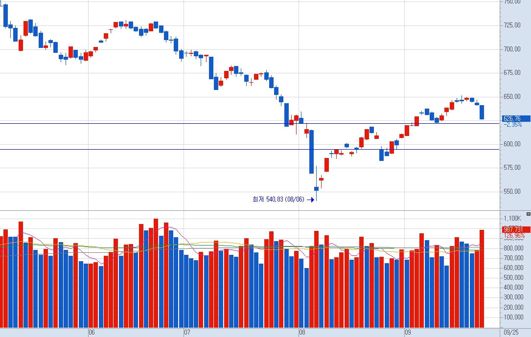 (투자하는 자금의 액수가 너무 크시다면 그냥 주식을 잠깐 쉬시다가 10월 초 정도부터 다시 코스피 혹은 코스닥 우량주를 노려보시는 것도 좋을 것 같습니다.