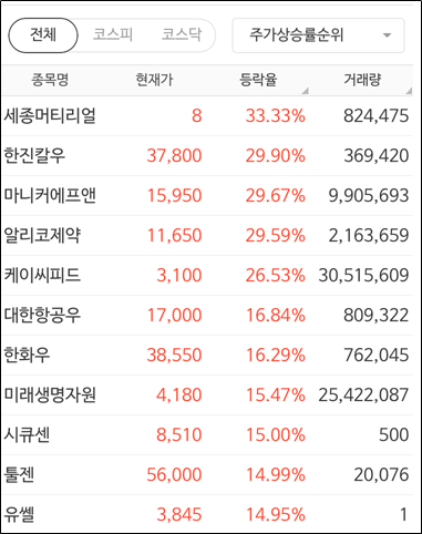 일단 상위 상승종목 보고갈게요!