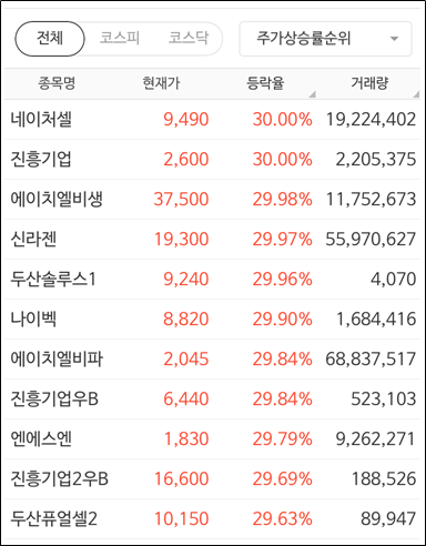 보여주고 있으나, 그 외 나머지 종목들이 조정을 받는 장이었네요.